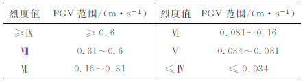 表 4 PGV转化为烈度值对应表1) Table 4 Relationship between instrumental intensity and PGV from USGS1) |