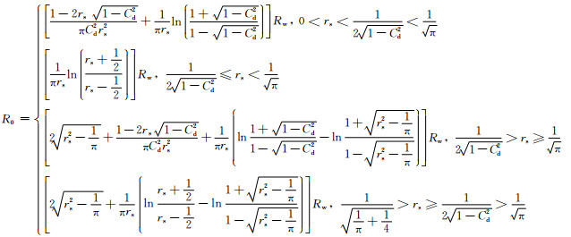当电流按照图 2,图 3中红色箭头方向流动时,在图 2,图 3的每一个电阻微元上,应用电阻定律,得到rs在不同数值区间时岩石模型饱含盐水的电阻率R0(方程(7)).