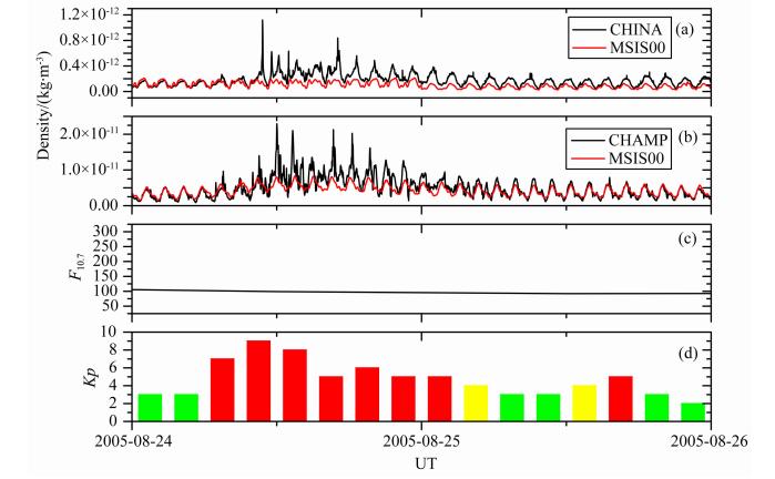 2005年8月事件,难得有机遇来比较CHAMP卫星和中国卫星在不同运行轨道高度上同时探测获得大气密度对这次磁暴事件的响应变化.