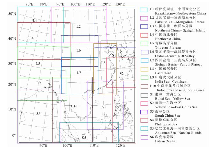 ![]() | 图 2 中国海陆1 ∶ 500万莫霍面深度反演分区 Fig. 2 Region division for inversion of the Moho depth(1 ∶ 5000000)in the l and and seas of China and adjacent areas |