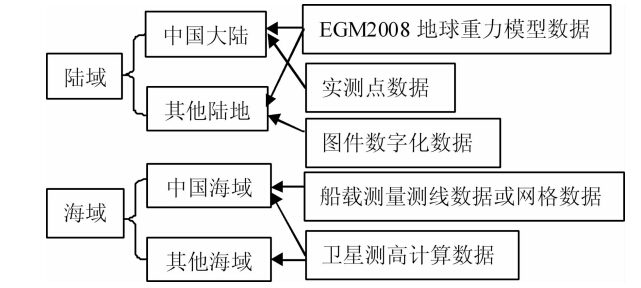 图 2 多来源重力数据关系结构图 Fig. 2 Structural diagram showing relationship of the muti-source gravity data |