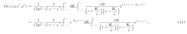 首先对(12)式中的角度部分积分,由于 K·(x-x′)= K x-x′ cosθ=r x-x′ cosθ(这里r= K 指极径),利用