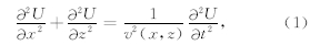 2 多次波在单程波叠前深度偏移中的影响在密度恒定的各向同性完全弹性介质中,假设 地震波震源是t=0时刻激发的脉冲,则地震波的传播可以用如下时间-空间域的二维标量声波方程表示为