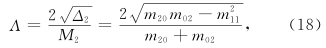 为了对位场表面的刻痕准确定位,我们希望同时使用两个二阶谱矩的统计不变量M2和Δ2来描述所有可能的位场刻痕.将这种综合参数定义为刻痕的脊形化系数Λ,定义为