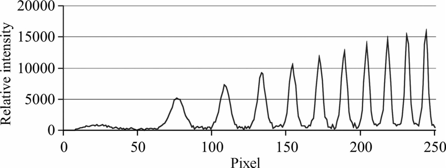 ![]() | 图 2 从“实测”干涉环转换获得的一维干涉曲线示例 Fig. 2 Interference fringes derived from anular-summing |