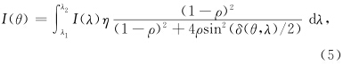 标准具在FP干涉仪中起到对辐射强度重新分配的作用.入射到标准具上的辐射,经过标准具后,形成多光束等倾干涉,经成像系统在CCD探测器上形成干涉环.本文采用固定间距标准具,其强度随入射角的分布由下式给出(Betzler,2002):