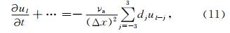 这里νa为人工黏滞系数.对(11)式作傅里叶变换,(11)式等号右端的衰减项可以表示为