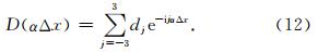 图 1给出了这种7点差分人工黏性格式下,系数 D(αΔx)与αΔx之间的关系,在图 1中可以看到,当αΔx取值小于1时,人工黏性对于波动的衰减作 用几乎为0.这种7点差分格式的人工黏性呈现出阻高频,通低频的性质,对于数值模拟中,波数最大的格点震荡波产生良好的抑制,而对模拟的声波则影响较小.