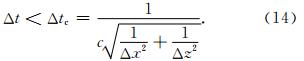 由于本文采用了显式时间格式,数值模拟中时间步长应满足柯朗条件