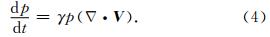 为比热比(cp=1005 J·kg-1·K-1为定压比热,Cp=718 J·kg-1·K-1为定容比热),g 为重力加速度.利用方程(2)可以将方程(3)变形为: