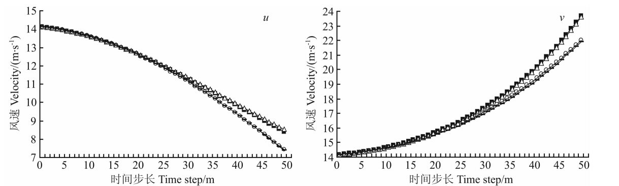 表 1 方案3和4的u、v 计算结果对比(单位:m·s-1) Table 1 Comparison of the calculation result of Scheme 3 and Scheme 4(unit: m·s-1) |