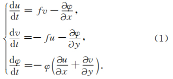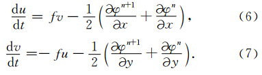 2 正压原始方程组的差分格式和半解析解格式直角坐标系下的正压原始方程组为: