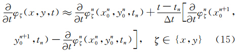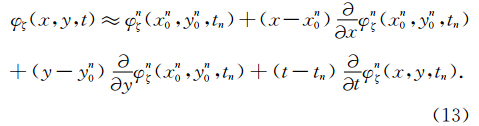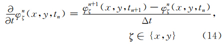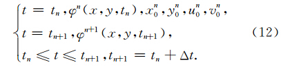 首先设φn(x,y,tn)为已知,给定质点的初始速度,