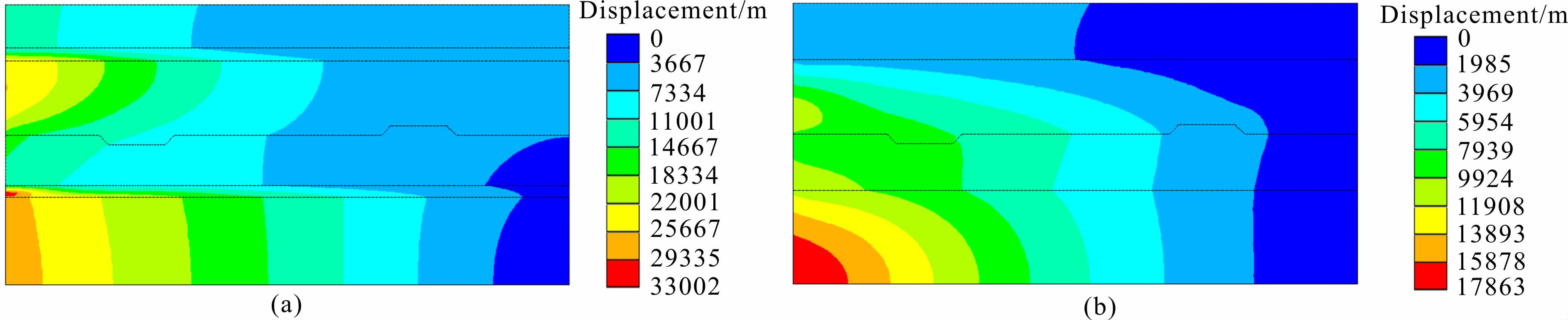 ![]() | 图 3(a)模型1位移场分布图;(b)模型2位移场分布图 Fig. 3(a)Displacement field of model 1;(b)Displacement field of model 2 |