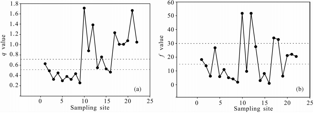 ![]() | 图4 研究区样品的磁各向异性参数q和f值 Fig.4 q and f factors for the samples from the sampling site |