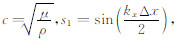 将平面谐波(10b)代入(9),当人工边界垂直 x 方向时,可得MTF格式的频散关系
