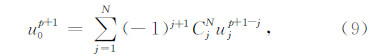 格式精度可用截断误差来衡量.对式(7)中的各项在 Ujp处作Tayloy展开,忽略荷载项,代入集中质量和修正刚度,可得其截断误差为