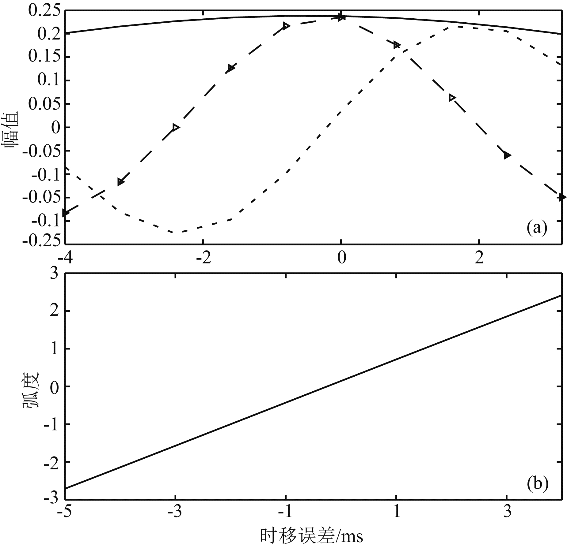 ![]() | 图 3 实曲波变换和复曲波变换误差分析(a) 实曲波变换和复曲波变换系数随时移误差的变化曲线; (b) 复曲波变换相位随时移误差的变化曲线.Fig. 3 Error analysis of RCT and CCT(a) Variance curves of RCT′s and CCT′s coefficient with time shift error; (b) Variance curve of CCT′s phase with time shift error |