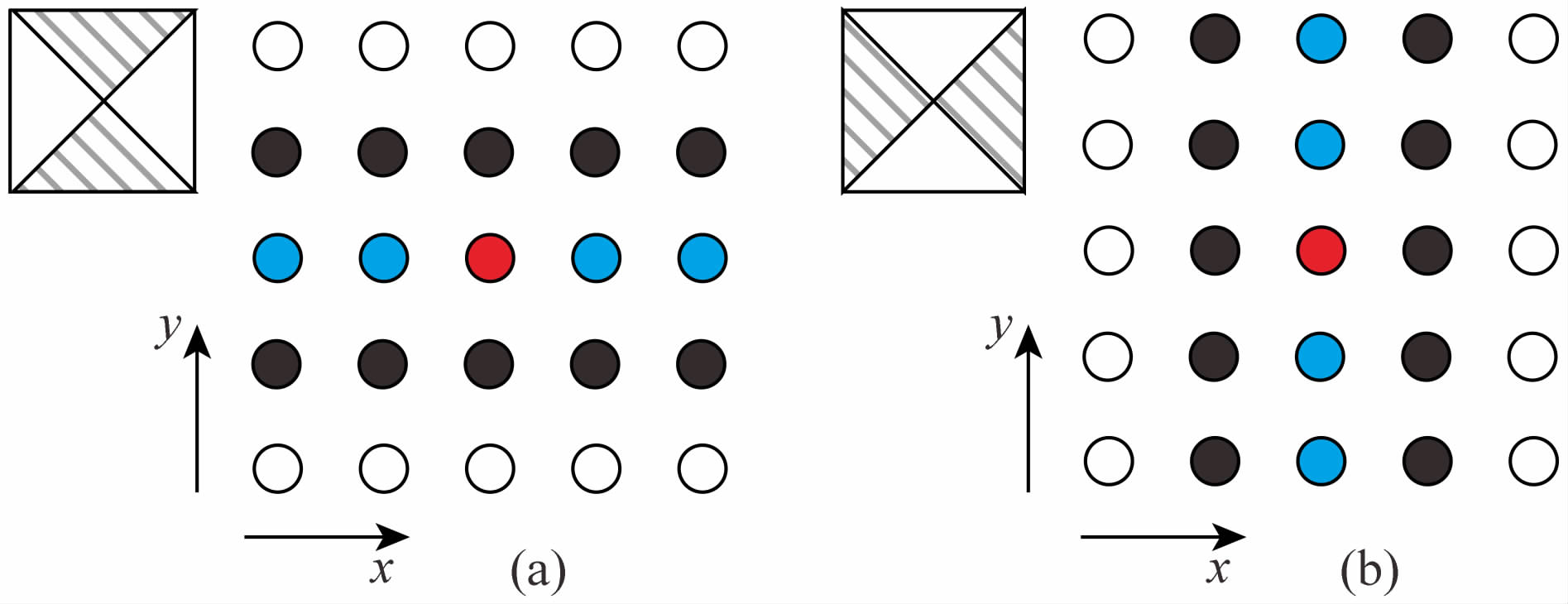 图 3 计算所需的样点组合 (a)、(b)沿不同方向选取样点组. Fig. 3 Plan viewof sample sets involved in the computations in this study (a)、(b)Sample sets along different directions. |