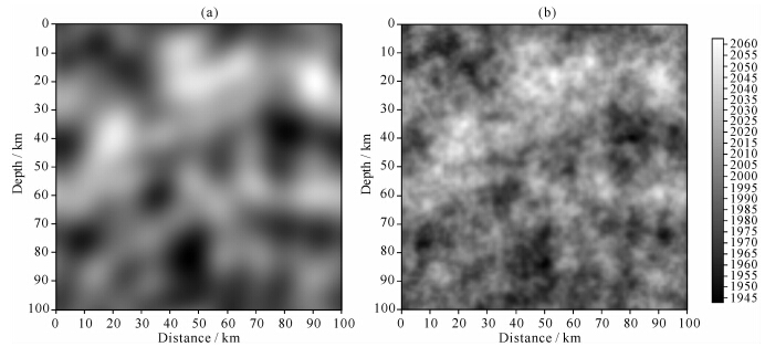 自组织是自然界的普遍现象,反映的是系统如何自动地由无序走向有序.如河流的沉积,首先沉积的是大颗粒,并逐渐沉积小颗粒.地球介质内部,46亿年的演化导致介质分布逐渐从混沌无序,到产生地核、地幔和地壳等几个有序区域,并逐渐从低级有序走向高级有序.随机介质表征的地球内部介质的自组织性,反映的是大尺度背景场上附加的小尺度非均匀性和统计性特征,代表了如构造活动的强烈程度和物质交换程度,有丰富的地球动力学含义.大量的观测和研究表明,无论从空间分布,还是尺度变化上看,地球介质内部的非均匀性是普遍存在的(Aki,1969;Wu,1982;Zhang et al., 1993;Yang et al., 2002;张中杰,2002;张智等, 2005,2013;杨顶辉,2002;滕吉文等,2004;Zhang and Klemperer, 2005;吴国忱等,2010;梁锴等,2011;兰海强等, 2011,2012;刘有山等,2013;Crampin and Gao, 2013;Liu et al., 2014),小尺度扰动比大尺度背景场对反向散射波场的特征影响更大(Levander and Holliger, 1992;Ikelle et al., 1993;Baig et al., 2003).如测井曲线和岩芯样本显示出的小尺度非均匀性(Wu et al., 1994; 吴何珍等,2008),地震地壳尺度的CMP叠加剖面上常常存在大量的横向上不连续,范围不大的较短的同相轴的反射段等等(Frankel and Clayton, 1986;Zhang et al., 2004).根据复杂介质中非均匀地质体(或非均匀异常)随机分布的特点,可借助基于统计学方法的随机介质模型进行研究和描述(Ikelle et al., 1993;奚先和姚姚,2005;徐涛等,2007;刘永霞等, 2007a,2007b;Xu et al., 2010,2014;郭乃川等,2012).通过随机介质表征的自组织介质模型上的波场模拟,使我们可能更加充分地利用实际地震记录中的信息,尤其某些以往认为是干扰的信息,并研究介质在小尺度上的非均匀特征.
