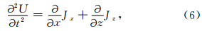由所得宏观通量Jxx i+1/2,jm和Jzz i,j+1/2m,对宏观方程(6)进行离散求解,得到tn+1时刻的解Ui,jn+1.由方程(6)可得