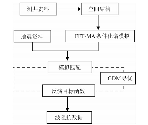 ![]() | 图 7 基于FFT-MA谱模拟的快速随机反演流程图Fig. 7 Flow chart of the Fast Stochastic Inversion based on FFT-MA spectrum simulation |