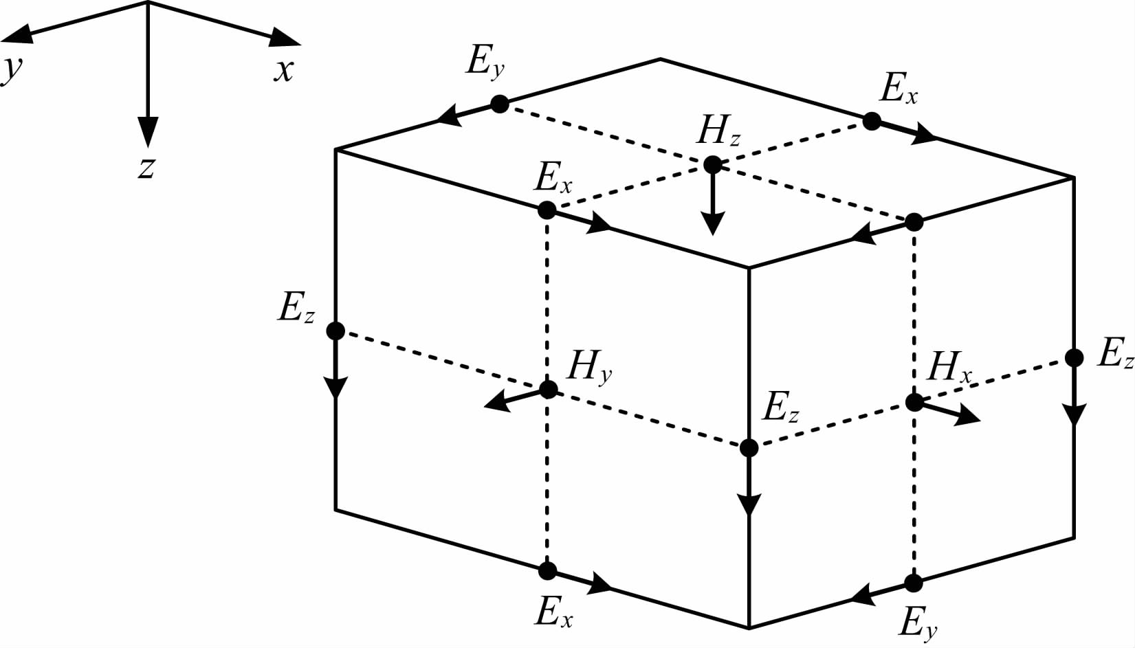 图 1 电磁场的交错采样Fig. 1 Sampling positions of EM fields on a staggered grid |
