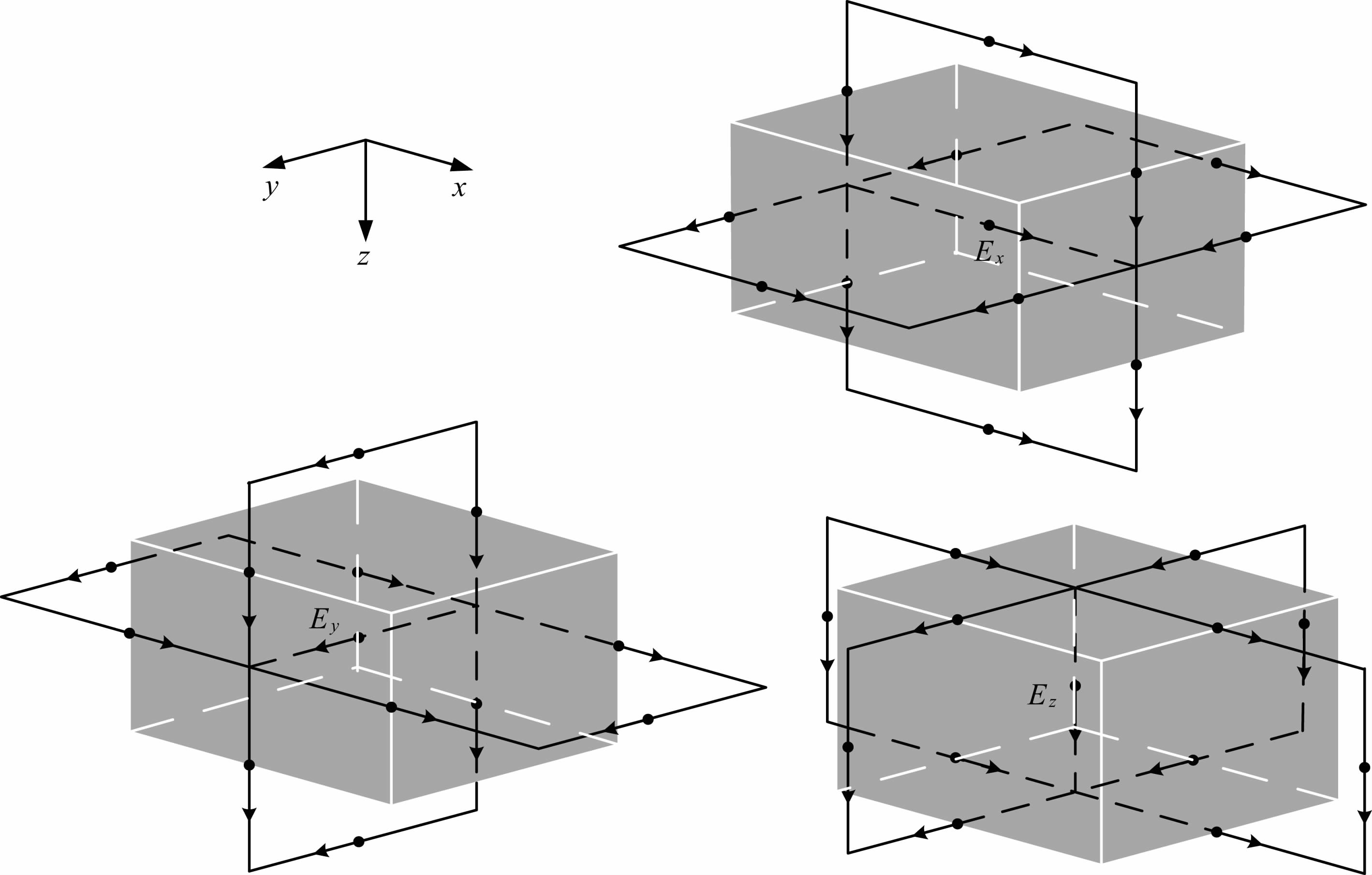 图 2 三个电场分量采样点处的控制体积Fig. 2 Control volumes for sampling sites of three E components |