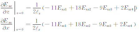 为单元内x、y、z方向的二次电场.将式(12)写成矩阵形式,有