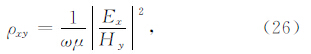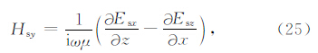 求得 Esx z和Esz x 后代入式(25)便可计算出地面上节点的二次磁场值Hsy,加上由解析解计算的一次磁场值H0y获得各节点上的总磁场Hy,便可用下式分别计算视电阻率ρxy和相位φxy: