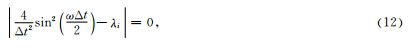 ,显然矩阵G和矩阵T相似,那么有det(G)=det(T).要使(11)式有非零解,其系数矩阵行列式必须为零,那么有