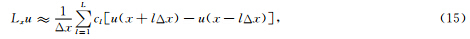 对于中心规则网格有限差分格式,采用泰勒展开式,函数u(x)的一阶导数的2L阶差分近似可以表示为