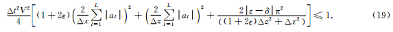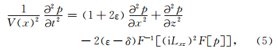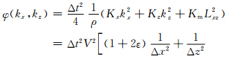 ,其他定义不变.如此便可将原来的4个傅里叶变换减少为2个,通过简单的推导可以发现改进后的波动方程与未改进的方程具有相同的稳定性条件,附录B给出了说明.