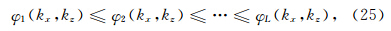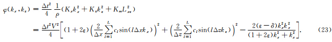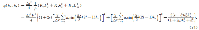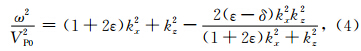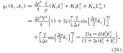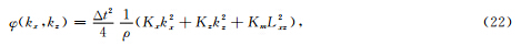 为角频率,kx和kz为x和z方向上的视波数,可以得到如下的频散公式: