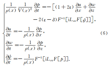 是虚数单位,本文通过引入一个辅助项ψ,将方程(5)改写为如下的纯P波一阶速度-应力方程: