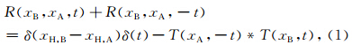 本文模拟背景噪声的情况,采用的被动源都为噪声震源,且噪声震源随机分布在地下,震源的信息未知.地表布设有两个检波器,用xA和xB表示.它们连续接收地下的透射波记录,分别表示为T(xA,t)和T(xB,t).利用透射记录重构地震反射响应的时间域表达式为