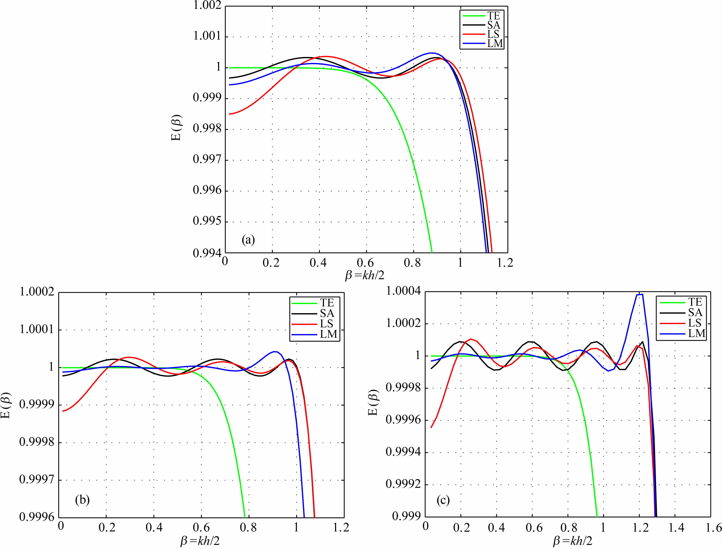 其中E(β)越接近1,误差越小,数值频散对比见图 2,从图中可得到: