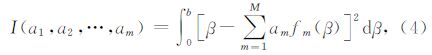 其中I是有限差分系数的非线性函数,并使I→min,fm(β)=sin((2m-1)β),b 为积分上限且小于等于π/2.目标函数的极值点在偏导数为零处,由此可以确定方程得到最小二乘交错网格有限差分系数.但是这种方法不能精确的控制误差在既定波数域内的分布,此外,由于需要计算积分,此方法求得差分算子耗时较多.
