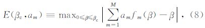 本文选择模拟退火算法对目标函数进行全局寻优计算:在给定波数范围0≤β≤βc内,通过改变am的值使误差最大值 E max逐渐收敛至最小,最后返回am值即为有限差分算子.为了节省计算时间,可以对模拟退火的系数空间进行以下约束:(1)所有系数为实数,即am∈ R ;(2)系数呈震荡递减,即 |am| > |am+1|,amam+1 <0.