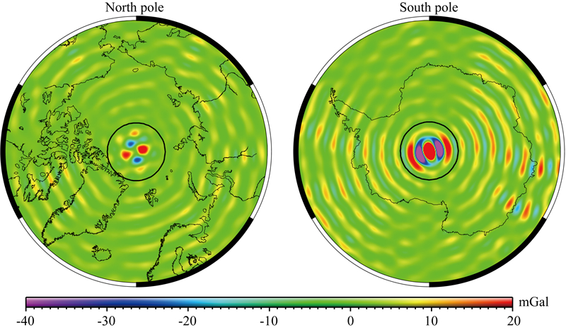 ![]() | 图 6 等权解和加权解计算的极区重力异常差异Fig. 6 Difference of polar gravity anomaly computed from equal and different weight |