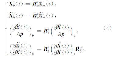 其中,Rba表示从a坐标系到b坐标系的转换矩阵,各坐标系之间转换矩阵的具体形式可参见文献(McCarthy and Petit,2004;Gruber et al.,2010).若已知a坐标系下的观测值,而要在b坐标系下完成地球重力场反演,则可以基于公式(4)得到b坐标系下的观测轨道,并利用积分器获得b坐标系下的积分轨道和变分方程解(积分中的力模型及其偏导数也均在b坐标系下),然后代入公式(1),即可实现b坐标系下的动力积分法.