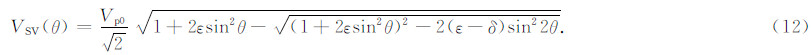 式(1)中Vp(θ)表示相速度,θ表示相速度传播角度,f中VSz表示横波速度,VPz表示纵波速度,ε和Δ表示Thomsen各向异性参数(Thomsen,1986).