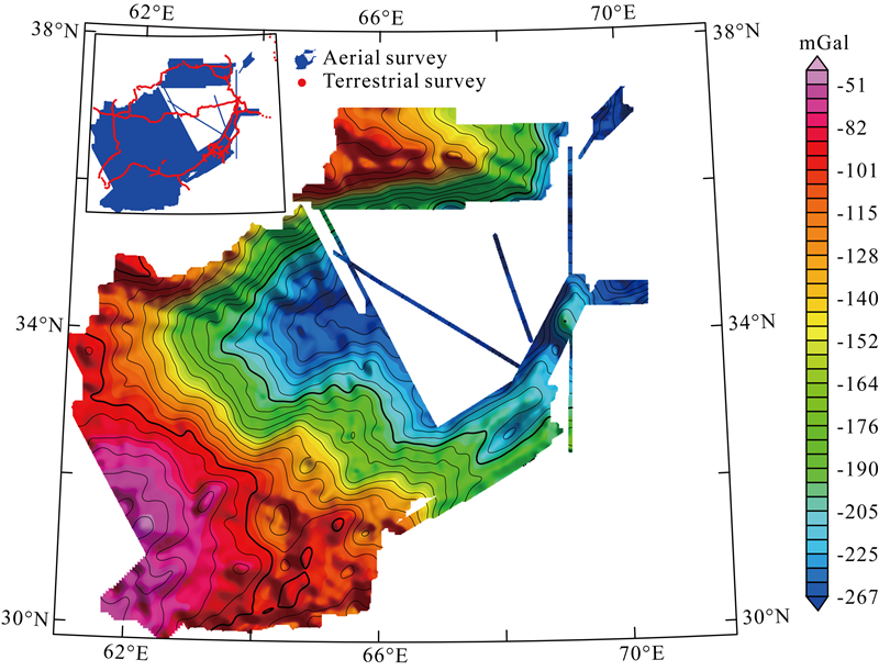 ![]() | 图 7 航空布格重力异常数据(归算离地高度7 km)Fig. 7 Airborne Bouguer gravity anomaly map at 7 km above ground |