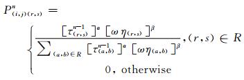 其中,ρ(0≤ρ≤1)表示信息素挥发系数,Δ τ(i,j)n-1表示在第n-1次迭代中数据点(i,j)上的信息素增量(段海滨,2005):