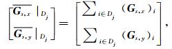 其中i是数据块Dj中的数据点.因为每个数据块Dj由四个基础数据块Γ组成,所以数据块Dj的平方梯度向量相当于对其包含的四个基础数据块Γ的平方梯度向量求和.例如D1={Ⅰ,Ⅱ,Ⅳ,Ⅴ},则有: