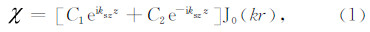 ,其中R为球半径,为求解方便将eiωt略去.空间域内球面波通过Hankel变换,可展开为波数域内柱面波的叠加: