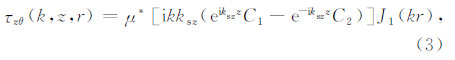 为S波波数,cs*为复剪切波速.C1和C2为待定系数.对于柱面SH波,由