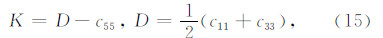 3.2 黏弹各向异性页岩模型Carcione根据标准线性体(St and ard linear solid)模型和Boltzmann叠加原理计算与弹性刚度系数、频率和品质因子Q有关的黏弹VTI(Transversely isotropy with a vertical axis)各向异性复数弹性模量p11、p33、p55和p13分别为(Carcione,1997)