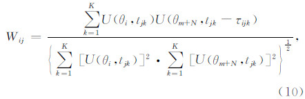 根据公式(10),对水平断面11个探测方向的拟地震数据分别计算相邻两探测方向之间的相关系数,判断相关性,见表 2.从表中可以看出,水平断面上相邻两测点数据之间最小的相关系数为0.12,最大的相关系数为0.9726.