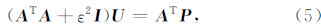 需要注意的是方程组(3)中的系数矩阵 A 常呈病态.为了获得稳定的解,可采用阻尼法最小二乘法(杨文采,1997),建立目标函数为